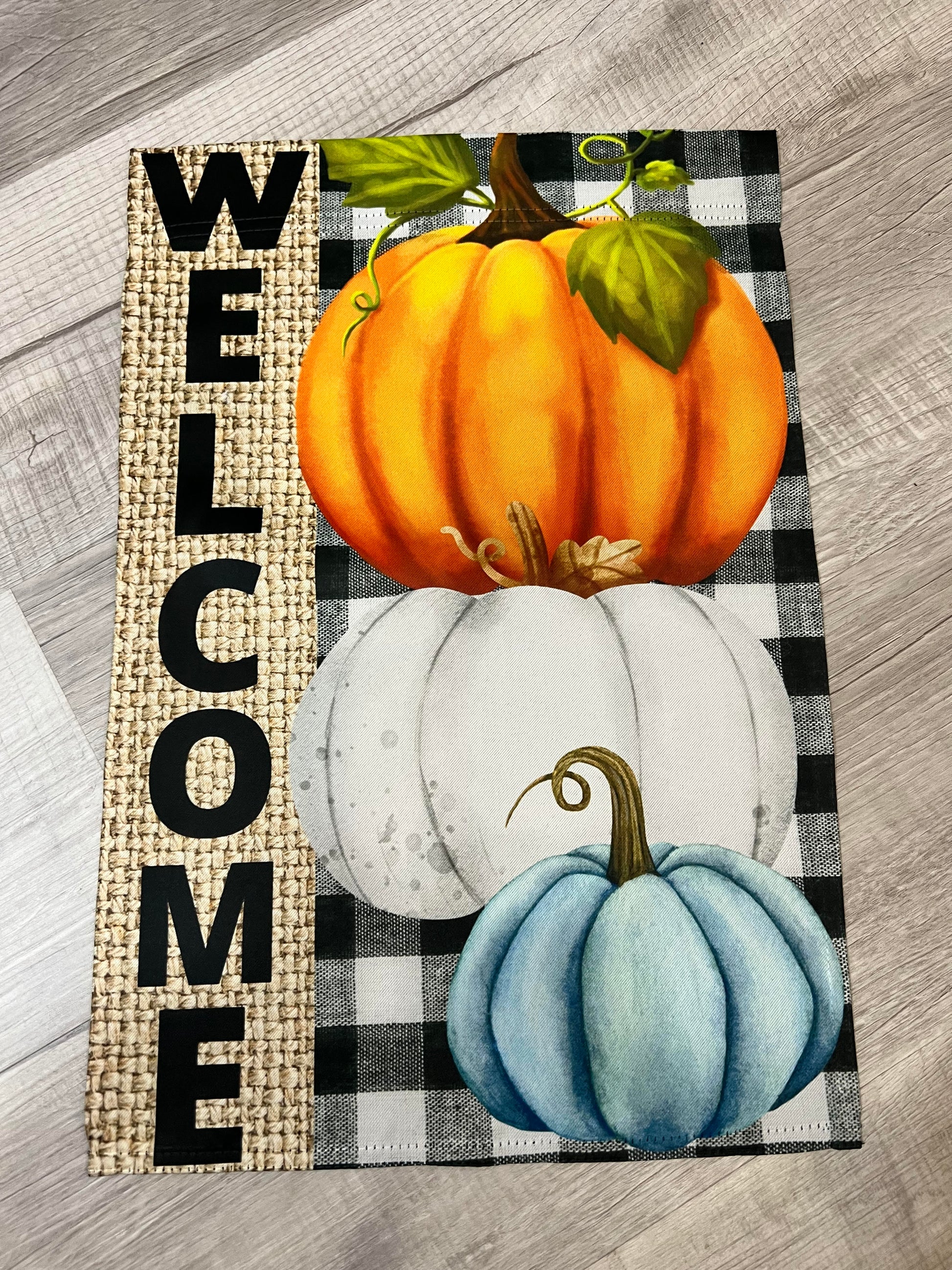 Three Pumpkin Welcome Garden Flag